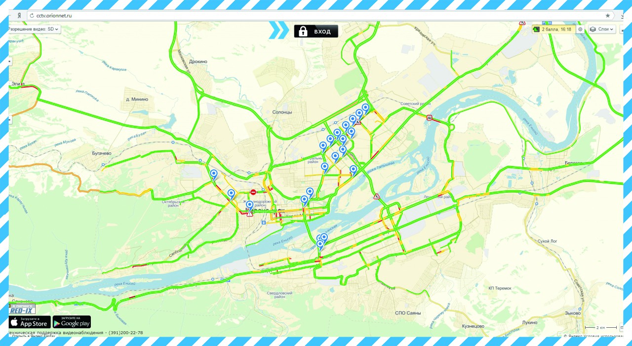 *Для доступа к просмотру онлайн камер, требуется дополнительная регистрация. Вы можете зарегистрироваться, позвонив по номеру +7 (391) 2 002 278, либо обратиться в Вашу управляющую компанию.